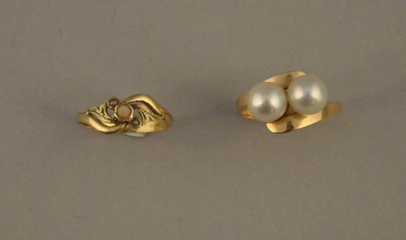 LOT de deux BAGUES en or jaune. La première ornée de deux perles de culture. La seconde en volutes feuillagées. Poids brut : 8,5 g.