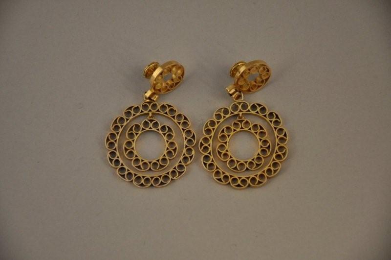 PAIRE de BOUCLES D'OREILLES en or à deux anneaux circulaires appliqués de volutes.