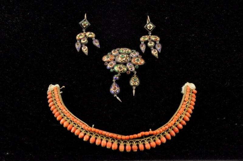 Seconde moitié du XIXème. Poids brut total : 20 g. (manque un motif à la broche et une pierre à un pendant).