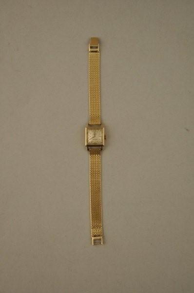 MONTRE de DAME à boitier carré et bracelet souple en or jaune. Remontoir. Cadran marqué MOVADO. Poids : 29,2 g. (rayures au verre)