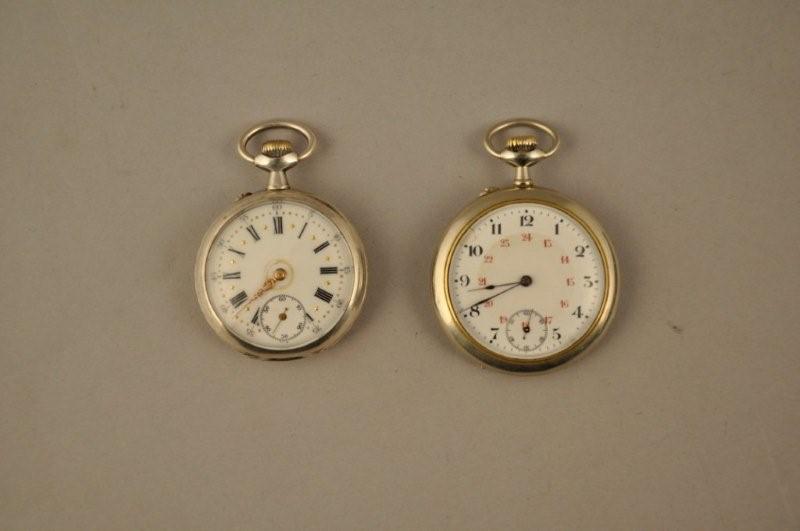 Joint : MONTRE de GOUSSET à remontoir en métal. Cadran en émail à chiffres romains pour les heures et arabes pour les minutes, trotteuse à 6h. Boitier marqué "Argentan".