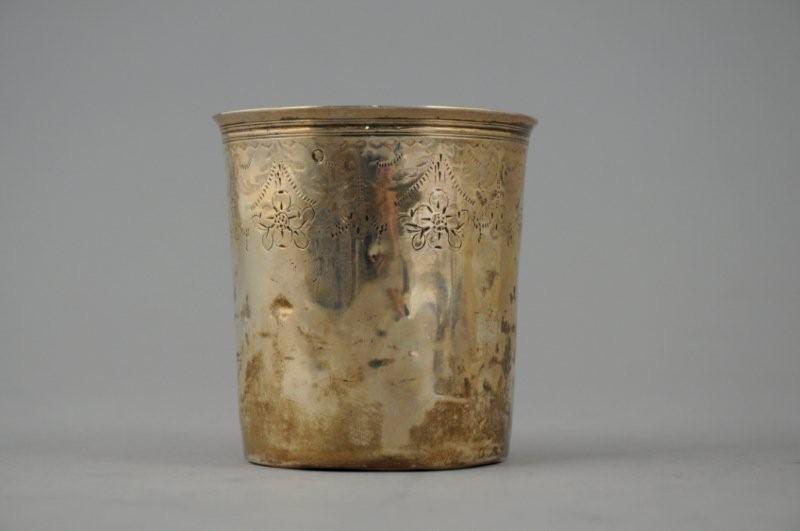 TIMBALE droite en argent uni, le col gravé d'une guirlande florale et de filets. Poinçon Vieillard (1819-1838). Poids : 80 g. (petits chocs à la base)