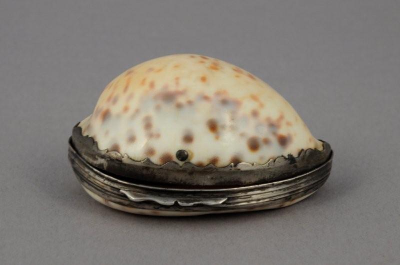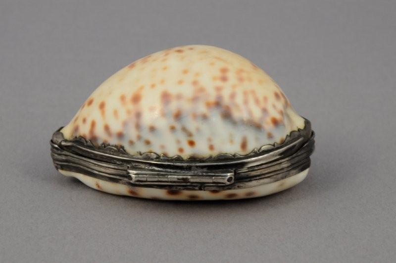 BOITE formée d'un coquillage bivalve, à monture en argent. Poinçon...