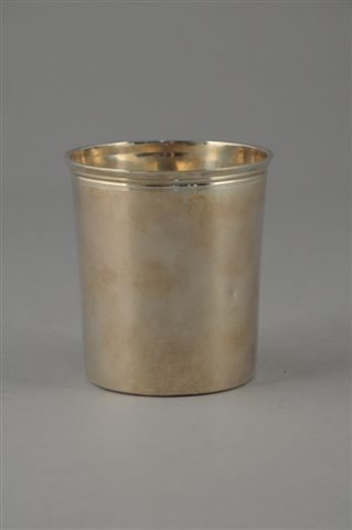 TIMBALE droite en argent uni. Filets au col. Poinçon Second Coq (1809-1819). Orfèvre : "A.I. C.I.E.". Poids : 90 g. Haut. 8,5 cm.
