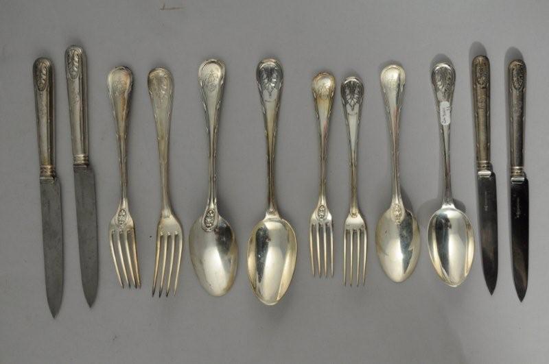 Soit 36 pièces. Orfèvre : CARDEILHAC. Poinçon Minerve.