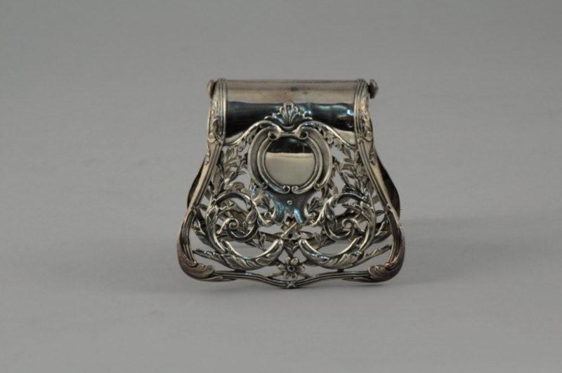 PINCE à ASPERGES en métal argenté, modèle repercé de feuilles d'acanthes stylisées, de fleurs, de branchages et cartouches à rubans.