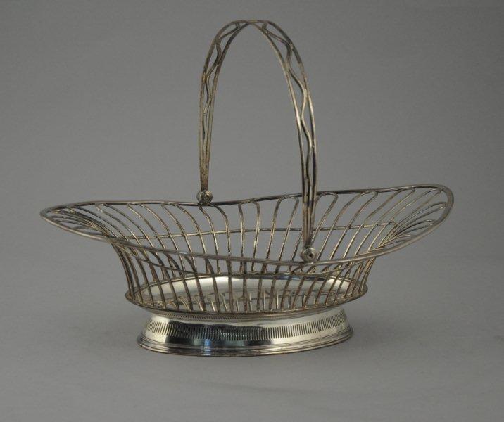 CORBEILLE à pain en métal argenté. De forme ovale sur piédouche ajouré. Anse mobile. Haut. 12, Long. 37, Larg. 23 cm