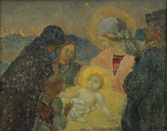 BRUNET Emile (1869-1944)Nativité.Huile sur panneau signée en bas à droite.33...