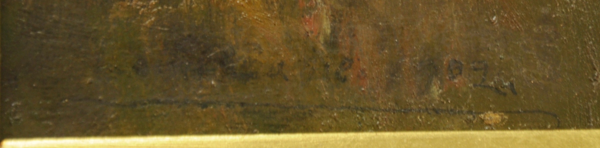 Huile sur panneau signée et datée 1902 à l'encre en bas à gauche.