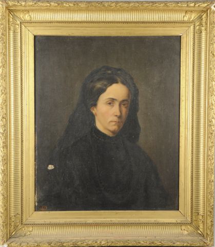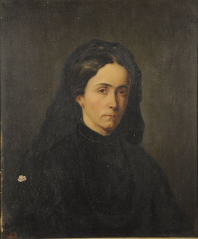 Huile sur toile dédicacée sur le châssis : " Souvenir affectueux à ma Nièce Cécile de Rollat-Pochin - Portrait de sa Mère. Souvenir offert par moi / à Cécile le 22 juin 1879 jour où elle a pris sa 19ème année. (Roanne 22 juin 1879). Porte une étiquette "22 collé en bas à gauche de la toile.
