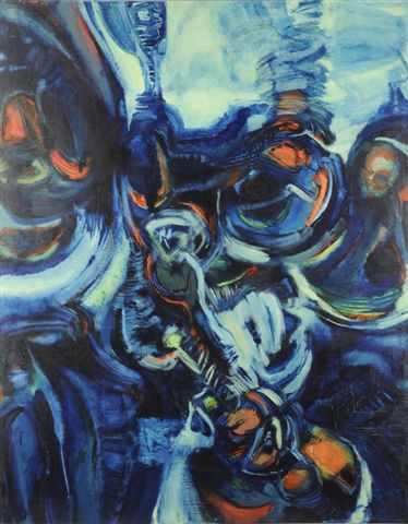 Huile sur toile, signée en bas à gauche et contresignée et datée "64" au revers de la toile . 72,5 x 92 cm.