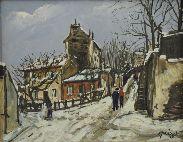 Lapin agile sous la neige. Huile sur isorel, signée en bas à droite. 19 x 24 cm.
