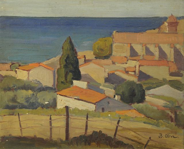 Huile sur panneau signée en bas à droite "JB Olive", non garantie.