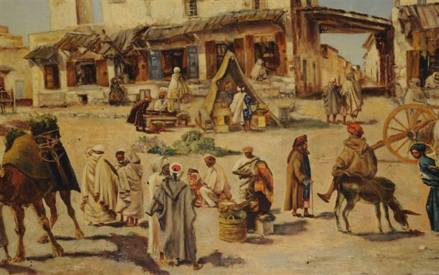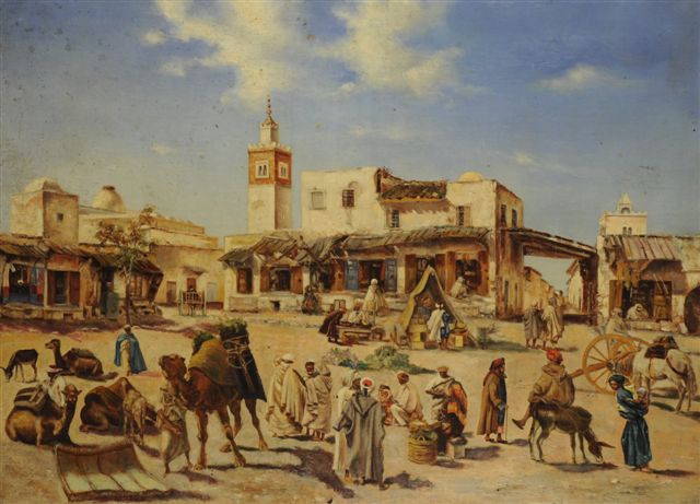 Ecole ORIENTALISTE début XXème.Scène de marché.Huile sur toile.80 x 60...