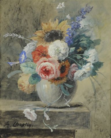 CHAPLIN Arthur (1869 - 1935)Composition de fleurs. Aquarelle signée en...