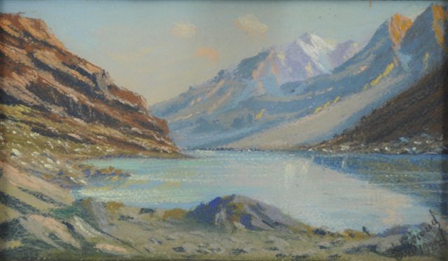 Pastel signé et daté 22 en bas à droite, titré au dos : "Lac de La...".