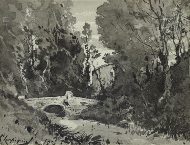 Lavis et encre, signée en bas à gauche et daté 1905.