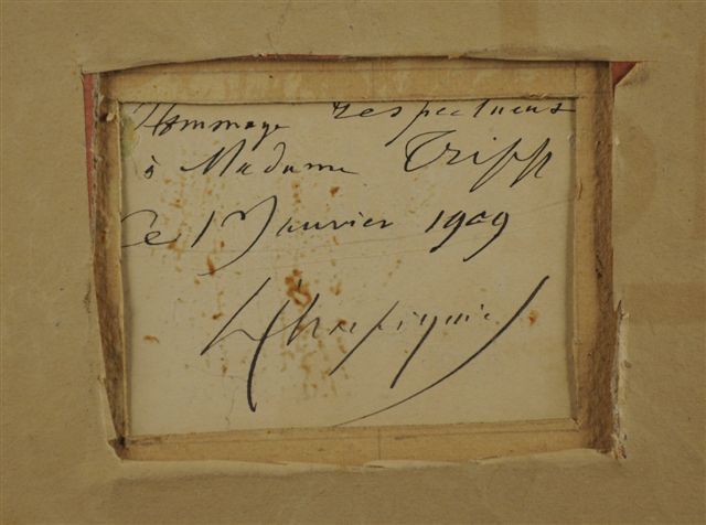 Au verso en " fenêtre " : Hommages respectueux à Madame Tripp, le 1 janvier 1909, Harpignies.