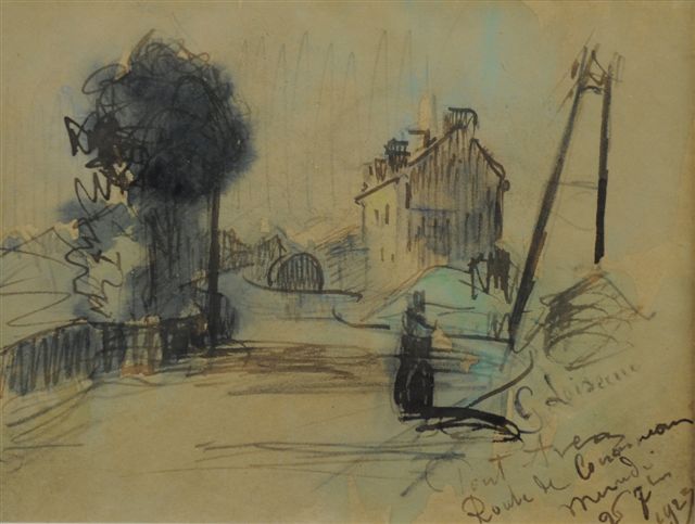 Aquarelle, crayon et encre. Signée, située en bas à droite et datée : mercredi 26 7 1923.