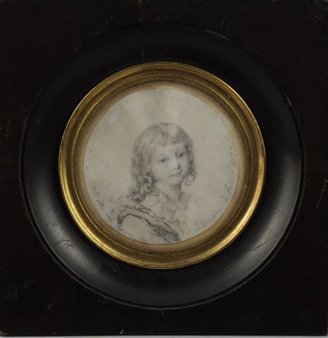 Miniature à la mine de plomb sur papier. Signé "Moitte del. d'après nature".