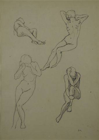 Crayon, initiales en bas à droite. 37 x 26,5 cm.