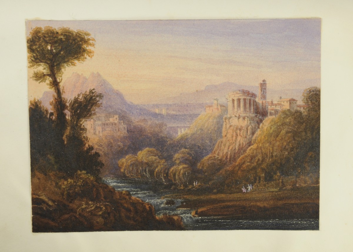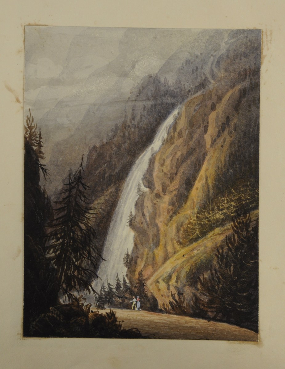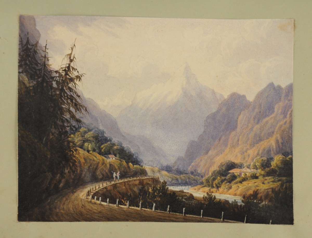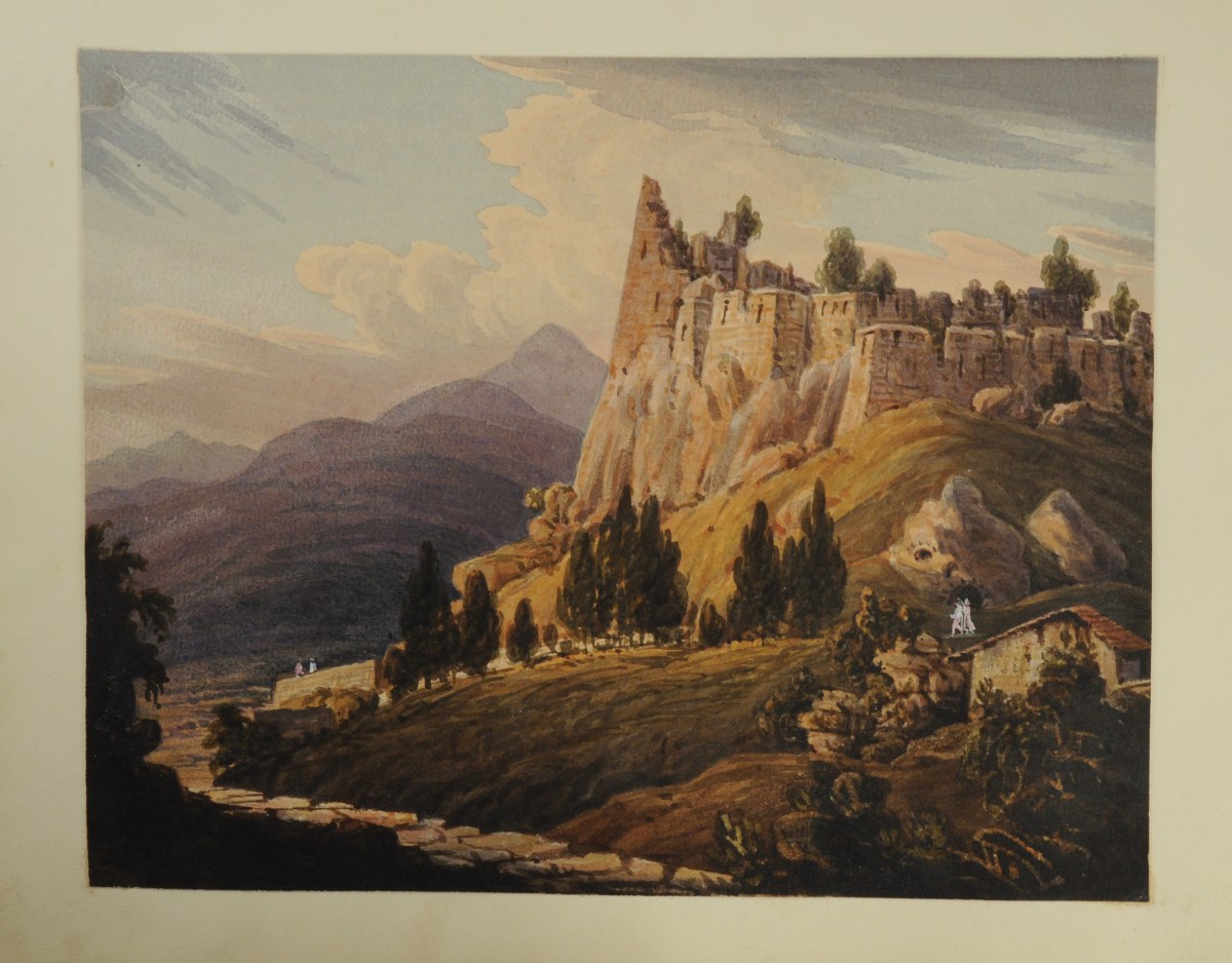 Vues d'Italie, montagnes-ruines, paysages animés dont Nice promenade " Les Ponchettes Rauba-Capeu 1848 "...