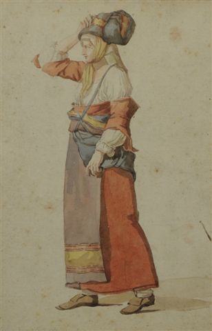 Deux études de femme marchand, l'une avec détail d'un soulier.