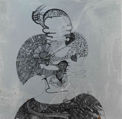 Sérigraphie à l'encre sur une tôle argentée, datée 1971.