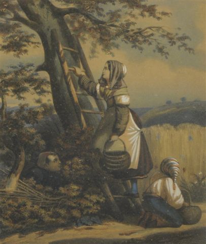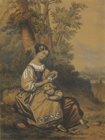Deux lithographies rehaussées d'aquarelle, formant pendants.