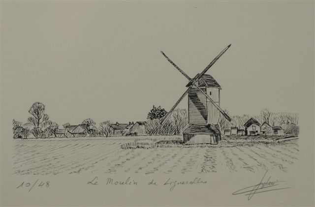 Joint : Le Moulin de Lignerolles. Estampe signée et numérotée 10/48. 23 x 31 cm.