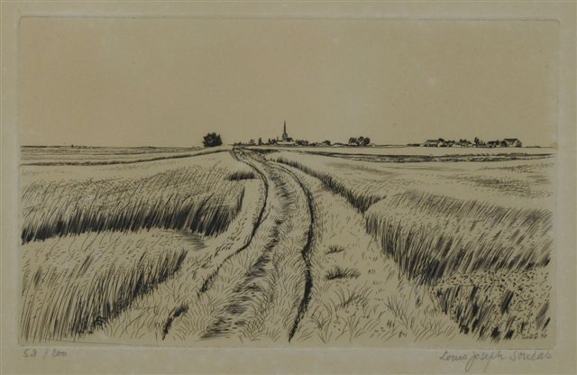 SOULAS Louis-Joseph (1905-1954)Chemin à travers champs.Gravure en taille douce signée...