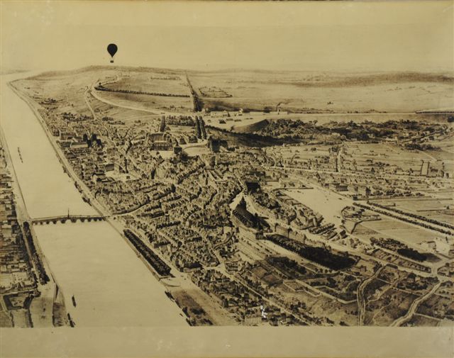 Joint : reproduction d'une gravure en vue aérienne de la ville de Blois (40 x 51 cm). Tirage photographique panoramique de Stockholm (24,5 x 10,5 cm). Dom Denis de Sainte-Marthe, gravure (30 x 29 cm)