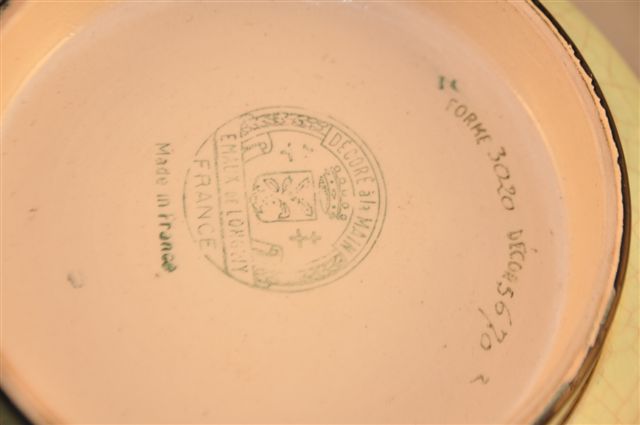 Marqué "Forme 3020 Décors 5670", Tampon rond de Longwy.