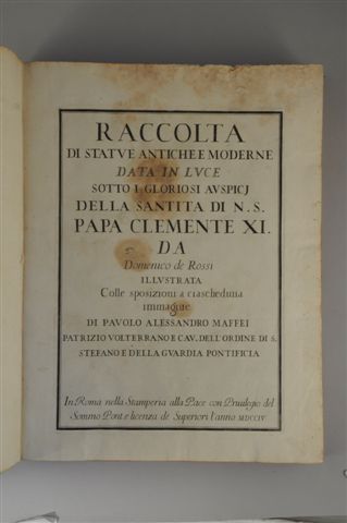 Raccolta di statue antiche e moderne data in luce sotto i gloriosi auspici della santita di n.s. Papa Clemente XI i da Domenico de Rossi Illustrata.