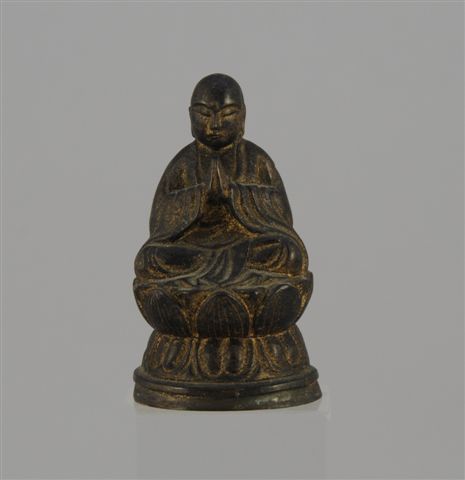 LOT comprenant : un BOUDDHA en bronze. Probablement Corée, période Choson. (Haut. 6 cm) et un ECRAN à main circulaire.