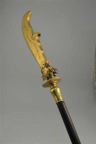 LANCES d'apparat. Extrémités en bronze. Fût en bois noirci.