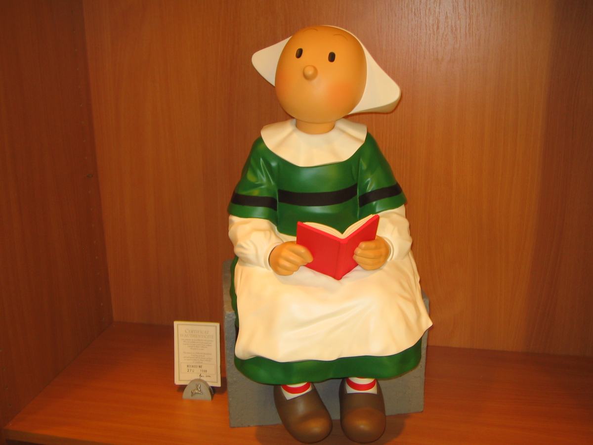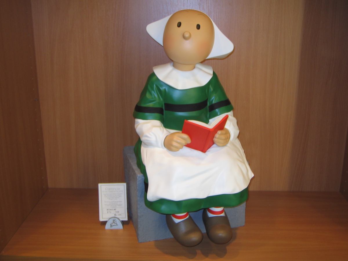 "Bécassine"BECASSINE ASSISE SUR SON SOCLE, polychrome.Résine. Figurine Leblon-Delienne. Certificat n°270...