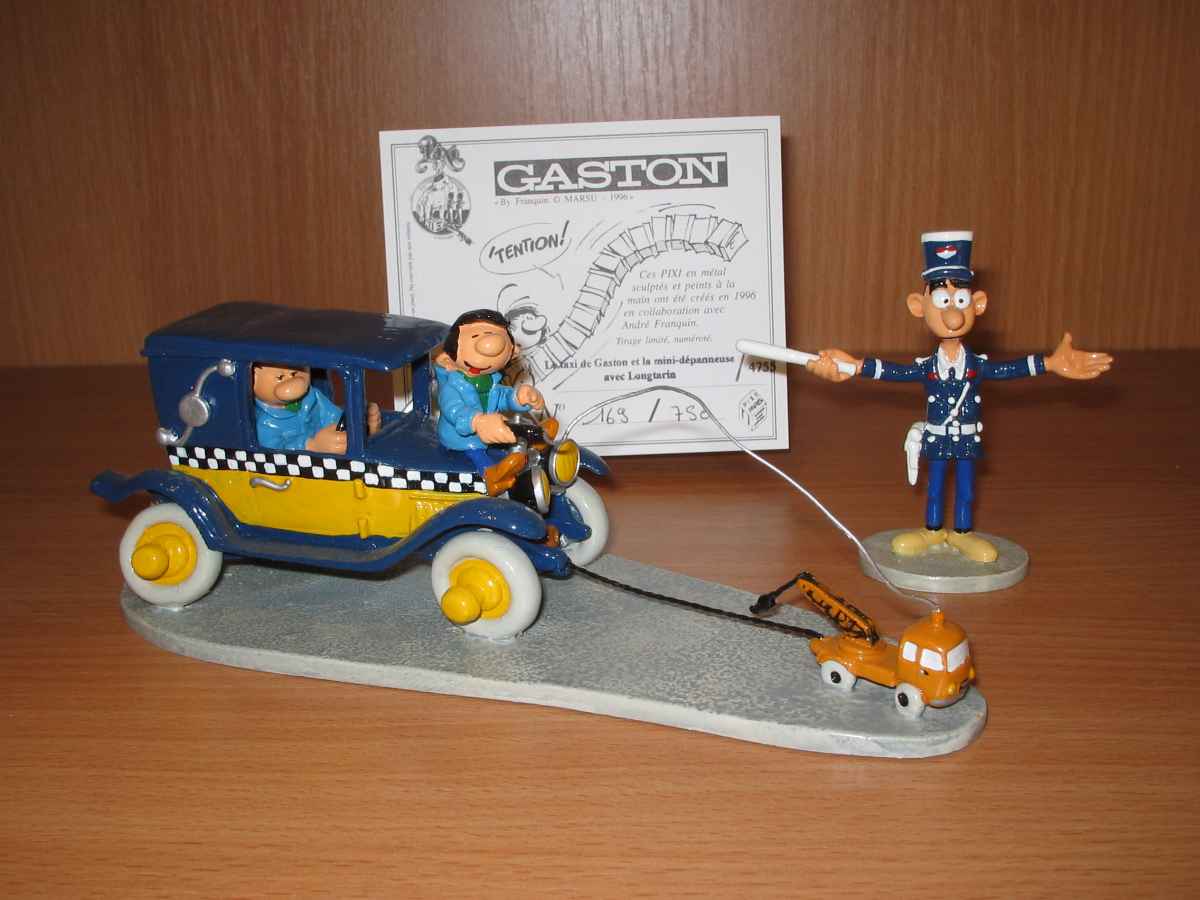 "Gaston Lagaffe"LE TAXI DE GASTON ET LA MINI-DÉPANNEUSE avec LONGTARIN.Métal....
