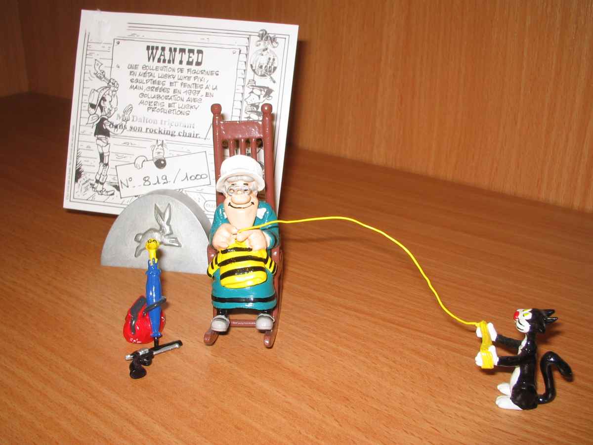 "Lucky Luke"MA DALTON TRICOTANT DANS SON ROCKING CHAIR.Métal. Pixi.Certificat n°819...