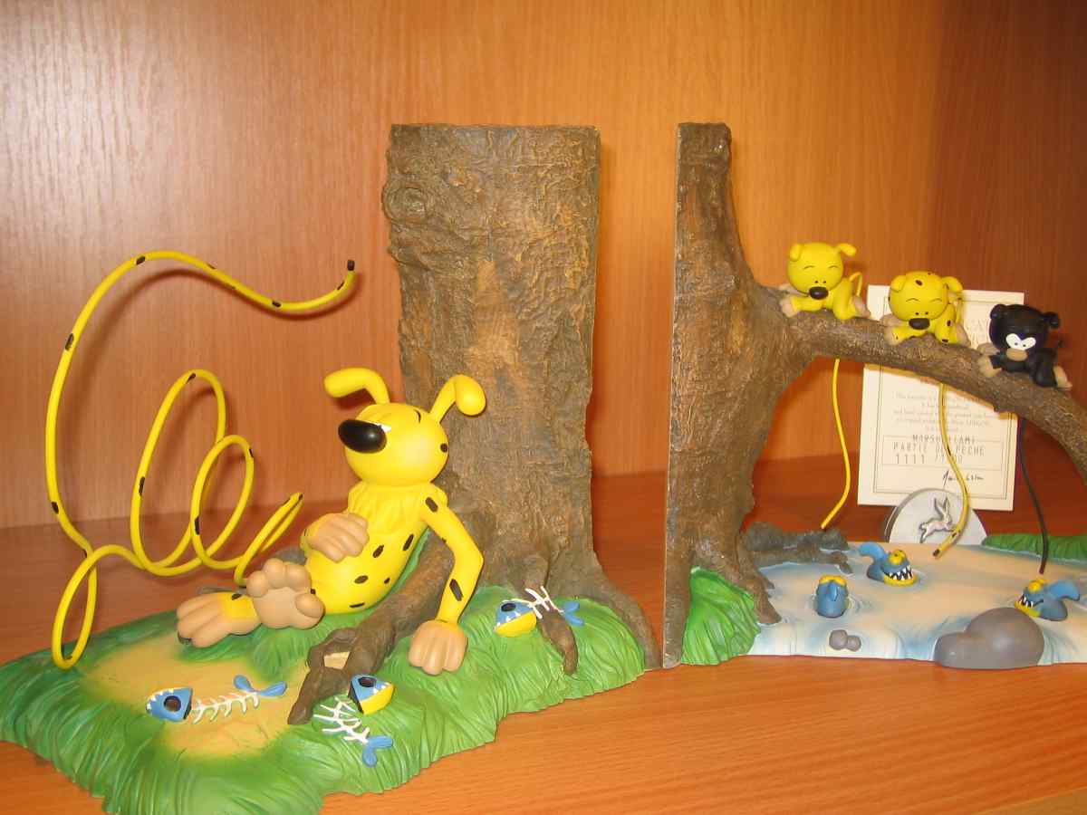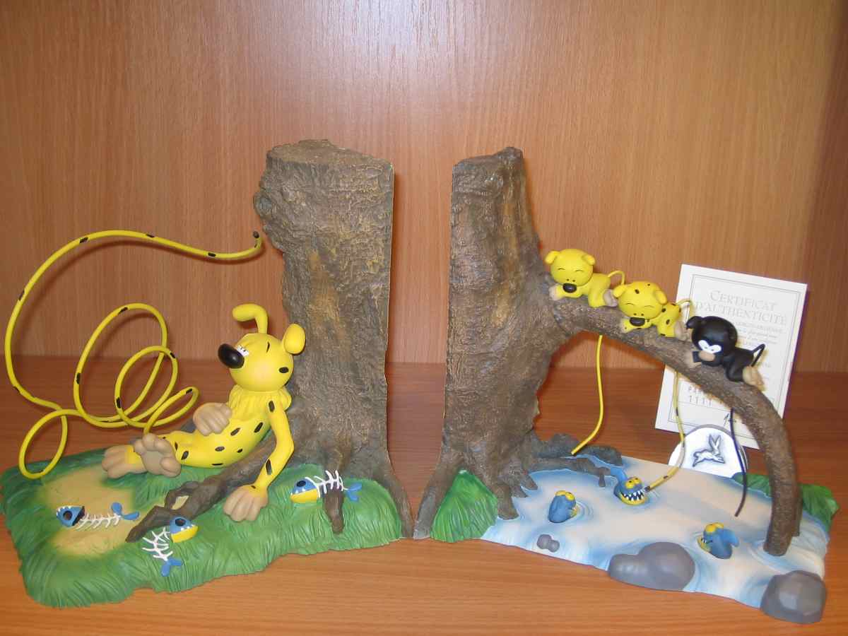 "Marsupilami"MARSUPILAMI. PARTIE DE PÊCHE, "Serre-Livres". Résine. Figurine Leblon-Delienne.  Certificat...
