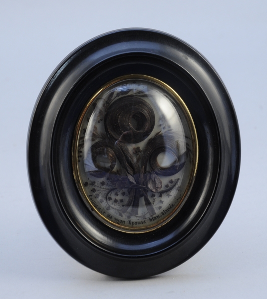 MÉDAILLON-RELIQUAIRE ovale : "Souvenir de mon Epouse bien-aimée.".