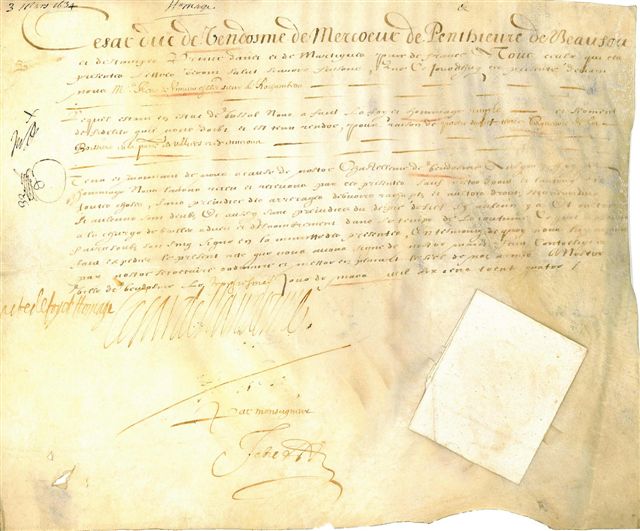 Actes de foy et hommage rendu par René de Vimeur, sieur de Rochambeau, (