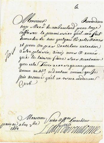 Lettre adressée à Monsieur de Drouilly, gouverneur du duché du Vendômois et capitaine des chasses, pour donner l'autorisation au Sr de Rochambeau de chasser les bestes noires sur les terres du duché. [Les "bêtes noires" sont les bêtes puantes ou carnivores : renards, loutres, chats sauvages, loups, sangliers, blaireaux. A l'opposé des "bêtes rouges" : cerfs, biches, daims et chevreuils, qui sont des animaux doux, dépourvus d'agressivité et herbivores.]