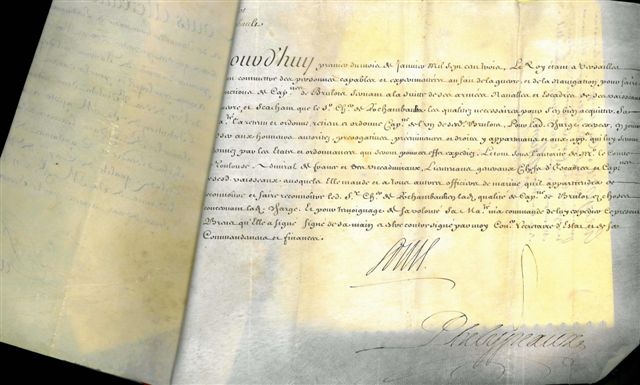 Commission de capitaine de brulot délivrée à François de Vimeur, chevalier de Rochambeau, oncle du maréchal.