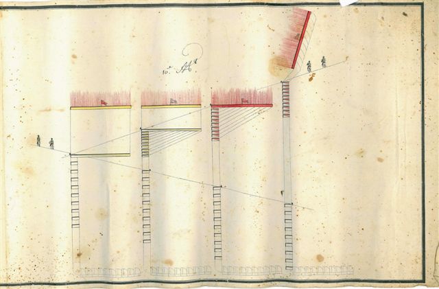 2 croquis à la plume et aquarelle sur bande de papier, annotation manuscrite au dos par le maréchal de Rochambeau, représentant les différents mouvements extraits de l'ordonnance de 1776, employés par les troupes commandées par le comte de Rochambeau, lors des manuvres militaires au camp de Vaussieux en Normandie, en 1778. 216 x 20 cm et 124 x 26 cm.
