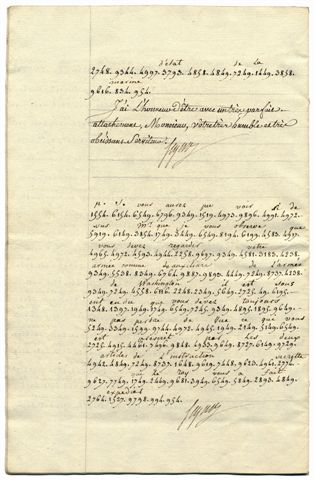 Dépêche codée en chiffres (en deux exemplaires) adressée au comte de Rochambeau, commandant en chef du corps expéditionnaire français en Amérique, contenant les instructions précises du roi Louis XVI.