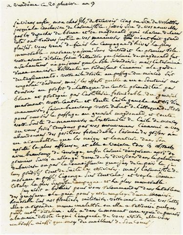 L.A., Vendôme 20 pluviôse IX (9 février 1801) ; 1 page in-4, adresse. Correspondance adressée à son fils, général de division à l'armée d'Italie.