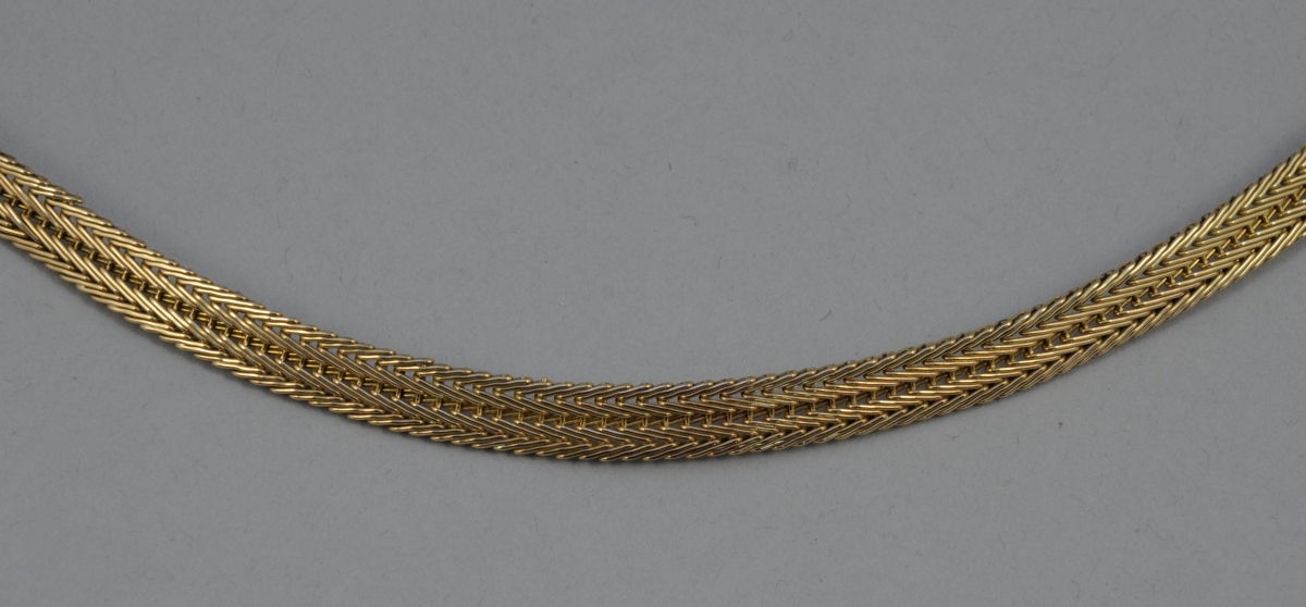 COLLIER ruban en or jaune à décor de chevrons.(légèrement faussé).Poids...