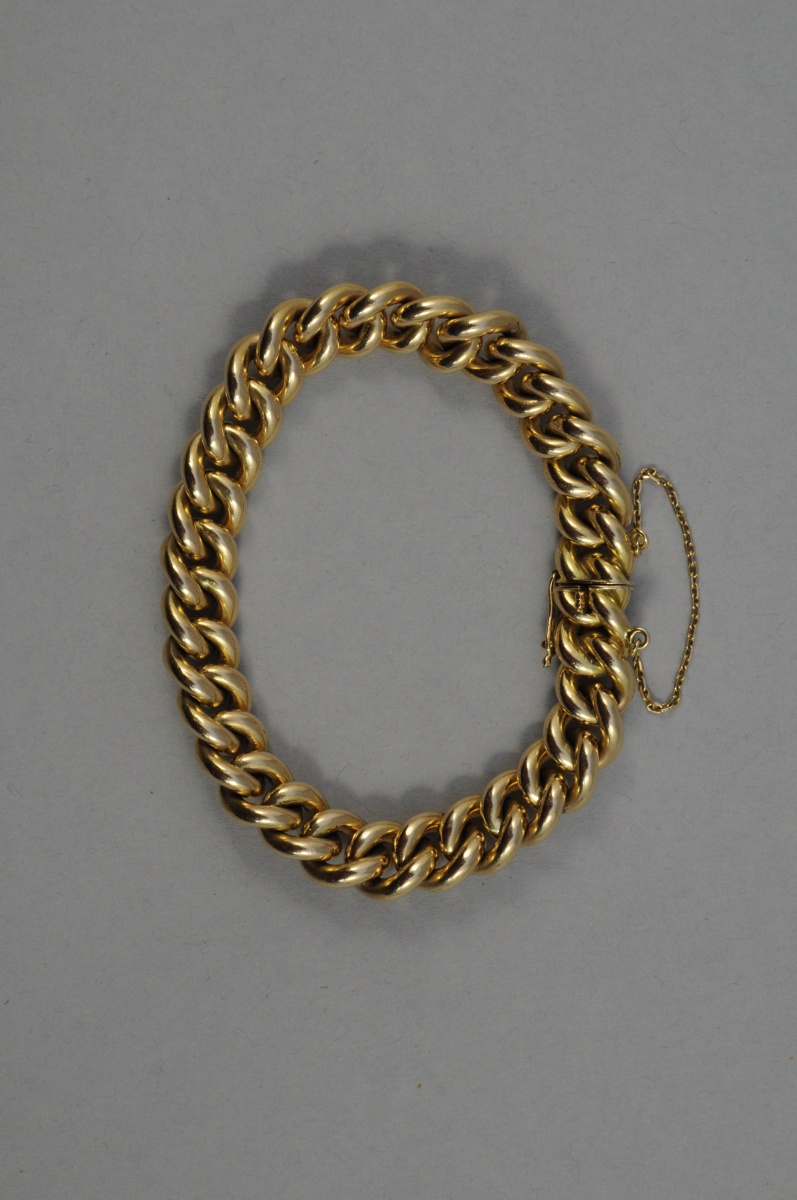 BRACELET articulé en or jaune, les maillons de forme gourmette.
