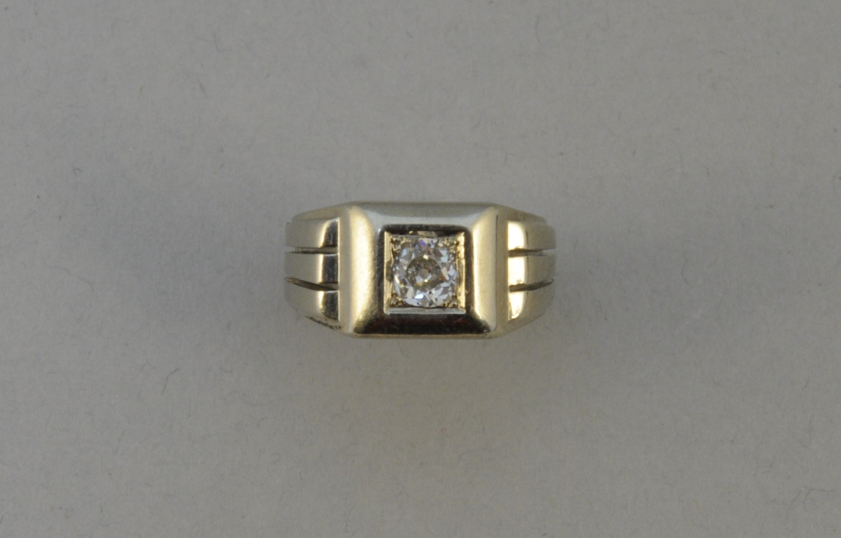 BAGUE chevalière en platine sertie d'un diamant solitaire de taille ancienne d'environ 0,30 carat.